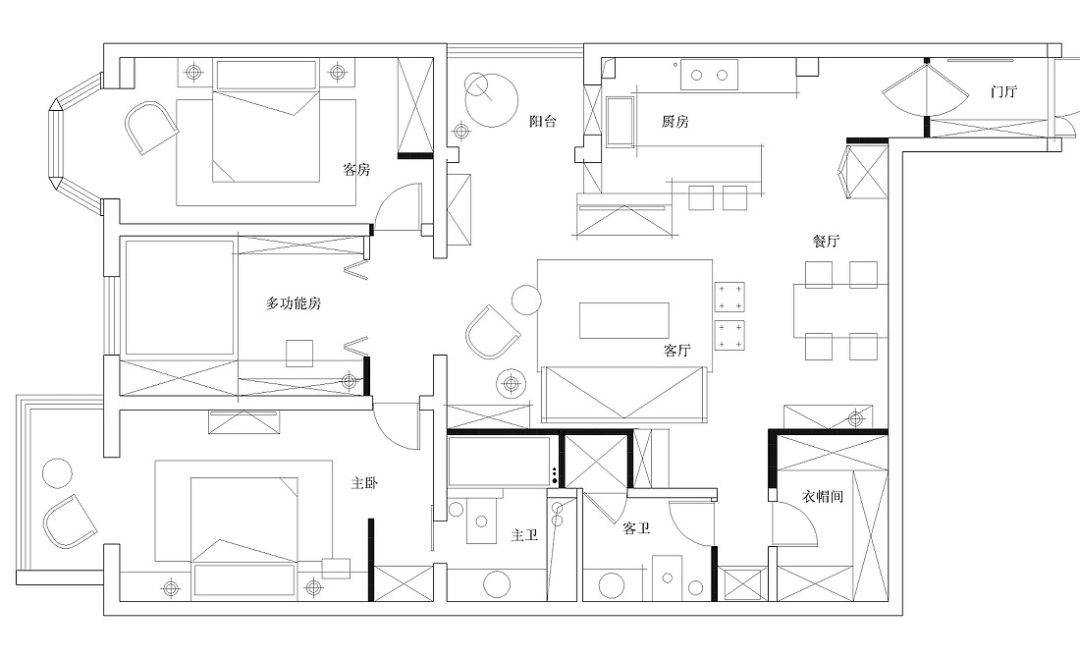 ▲ 原户型中书房是一间封闭的房间,现在将非承重墙拆除,门洞扩大,使用折叠门,营造出更为宽敞通透的效果,并且增加了客厅的采光。