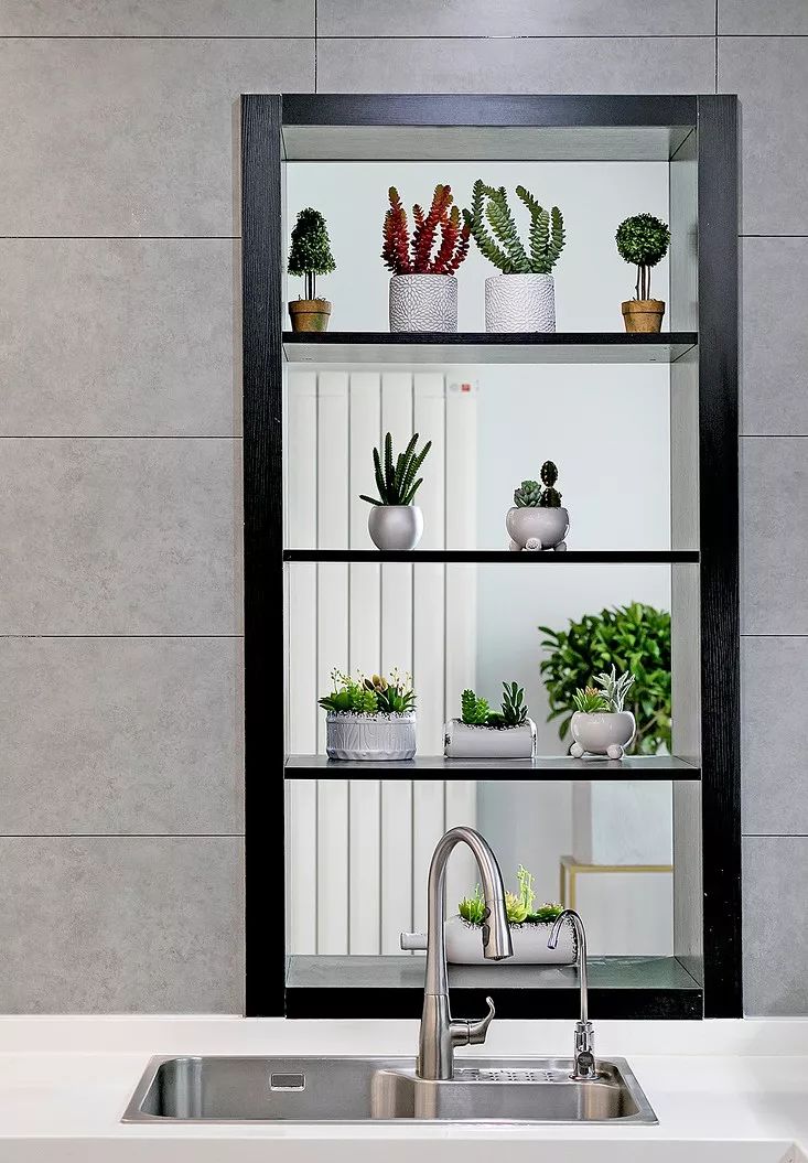 ▲ 原来对着阳台的窗户,设计成层板,保证采光的同时增加装饰感。