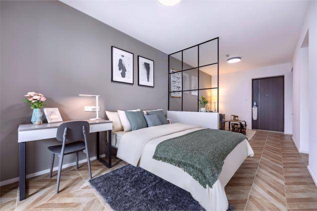贸家公寓采用“1+6”的产品标准,一个租住空间,辅以门店酒店式大厅前台、健身房、桌球室、影音室、阅读书吧、公共卫生间六大社交空间。不仅设计客餐厨一体化、奢阔大阳台、独立卫浴、干湿分离,打造舒适度升维户型;还定制贸家现代简约装修风格,严选家具家电品牌,做到配套齐全,保证租客拎包入住;更致力于通过社交空间让租房不只是四面墙,更成为生活的主场。施工工程阶段,贸家公寓联合国贸地产制定工程标准化管理制度,进行工程治理监督、品质管控、全流程全周期管理。