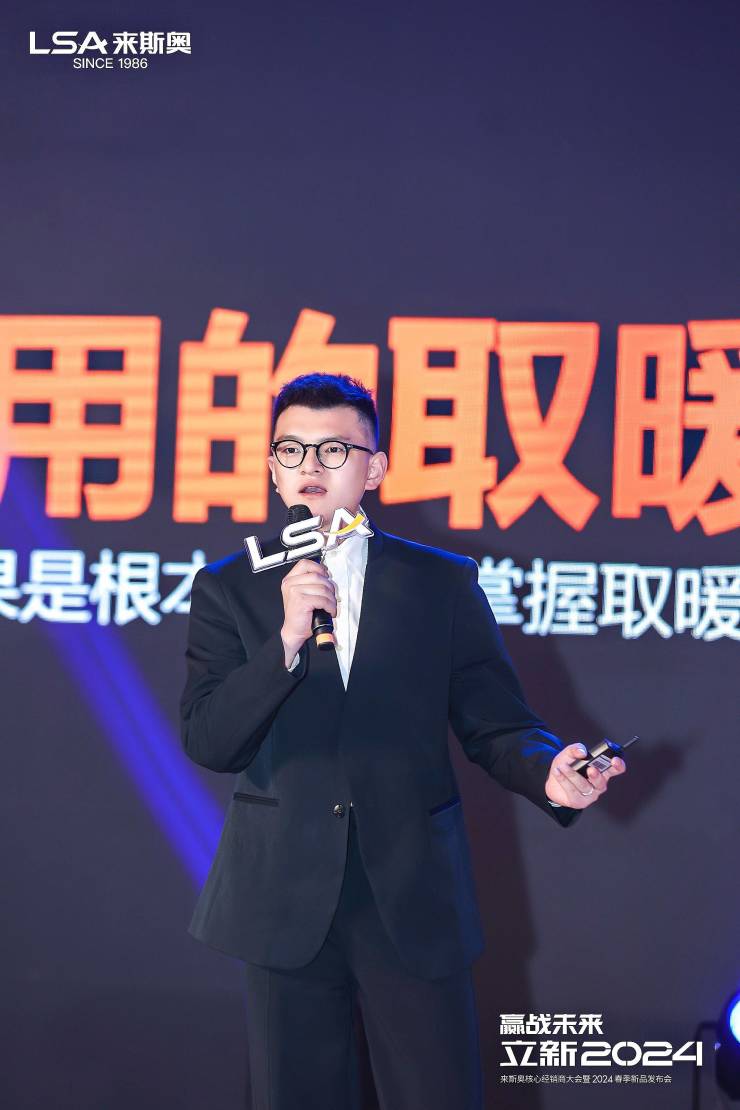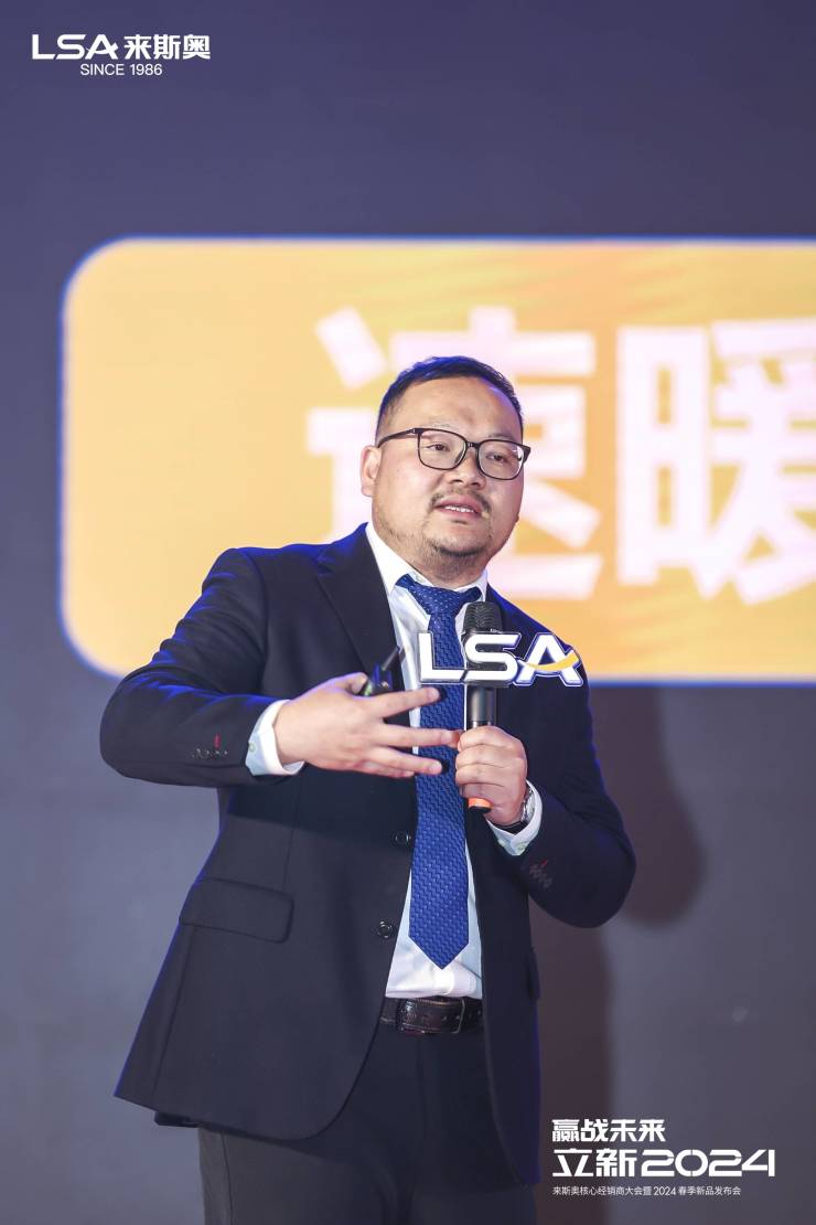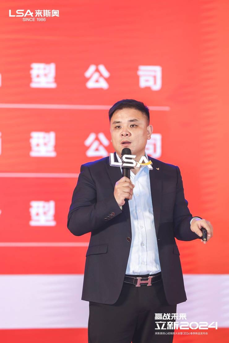 随后,来斯奥集成家居股份有限公司总经理姚哲凡先生发布了来斯奥全新品牌战略,按照”立足2023,布局2024“的脉络为大家细致剖析如何打败敌人、抢占市场,真正实现品牌的可持续发展。过程中,姚总正式发布了全新品牌战略“聚焦卫浴空调,拓新六大空间”,热烈奏响来斯奥的年度乐章。