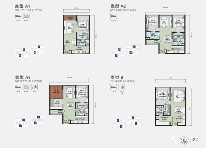 单位面积由58.5平米至139.6平米