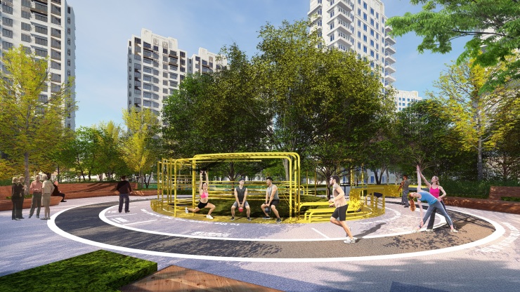 社区健身计划打造60分钟健身圈,将健身三大核心:硬拉、引体向上、深蹲融入其中,结合其他20多项健身项目。