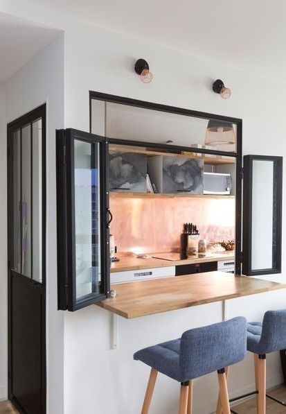 室内窗受到欢迎,不止是出于功能上的原因,它还能丰富墙面的内容,省去一笔挂画的开支,提高颜值。