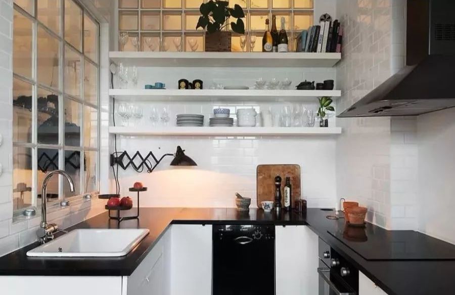 简单一点来说,只用来采光的内窗其实就是玻璃隔断,对于厨房这种只希望增加光线,不要油烟气味流通的空间来说再适合不过了。开窗的范围位于橱柜与吊柜中间,也正好是人操作时的视线位置,料理的时候也可以看到家人在客厅活动。