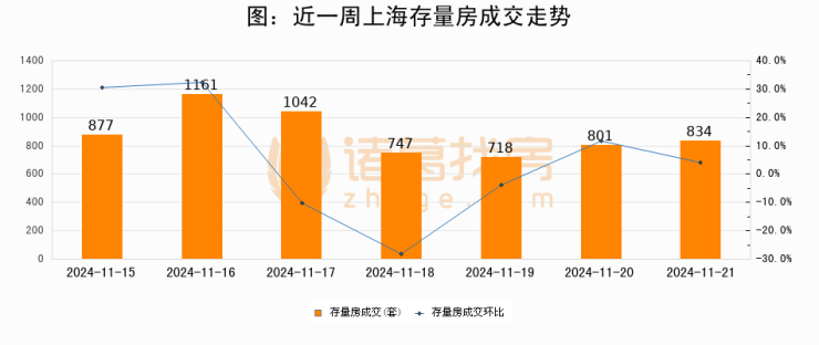 【上海成交日报】11月21日二手房834套;涨价房源102套