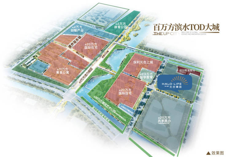 依托百万方TOD,住宅、商业、办公、公寓、文化、教育、生态7大业态聚合。舒适步行圈内,繁华与自然、商业与人文,随心所享。