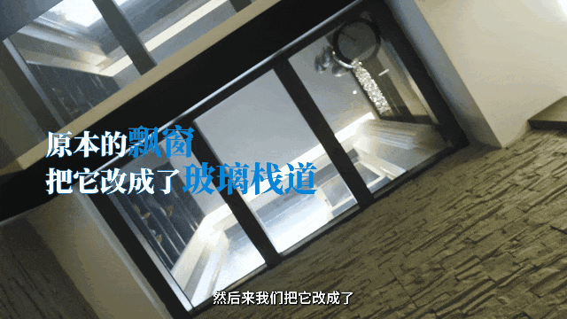 而为了更充分的采光,将一楼的飘窗改造为了玻璃栈道,将自然光引入了地下。