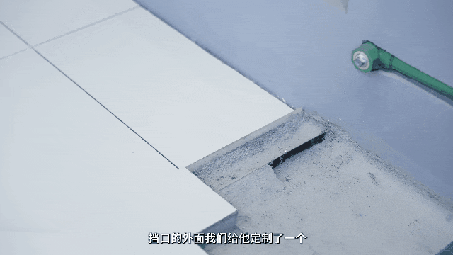 此外,针对淋浴区湿气外泄的问题,我们在淋浴区外侧定制了不锈钢挡水条,在这一基础上进行防水处理,能够地将淋浴湿区的湿气框死在内,避免向干区扩散,也避免了以往防水不到位导致的卫生间瓷砖发黑的问题。