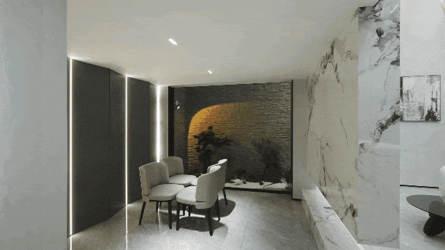 会客空间与玻璃栈道,以穿透结构打通,光与空气实现了巡游,更为灵动。