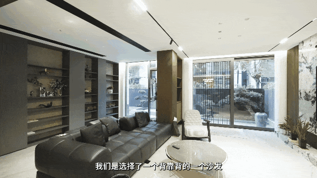 沙发则选择了“背靠背”的款式,一边是电视背景,另一边是书柜,场景上做了区分,但空间上则保持一体性,更显开阔。