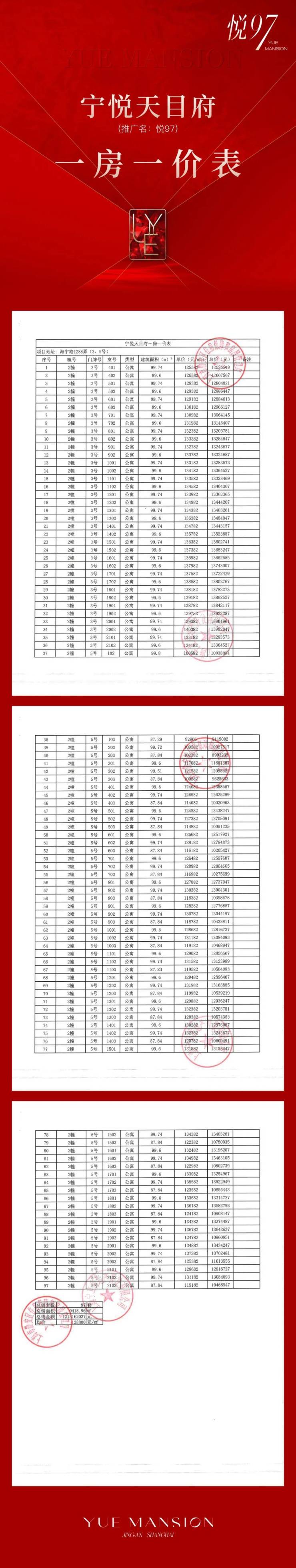 本宣传资料为要约邀请,不作为要约或承诺,内附所有资料,包括任何图片、插图、设计图、文字描述或其他资料,仅供参考或识别之用,不构成合同内容,具体以合同内容及政府最终审批为准。本案推广名:悦97;本案备案名:宁悦天目府;开发商:上海宁立房地产开发有限公司。预售证号:静安房管(2025)预字0000323号;本资料制作时间为2025年10月,有效期至2025年11月。本公司保留对宣传资料修改的权利,敬请留意最新料。