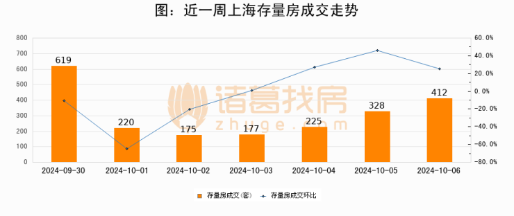 【上海成交日报】10月06日新房成交75套、二手房412套;涨价房源437套