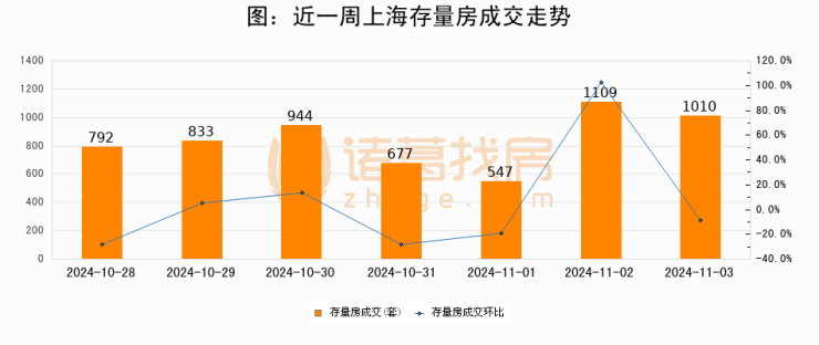 【上海成交日报】11月03日二手房1010套;涨价房源95套