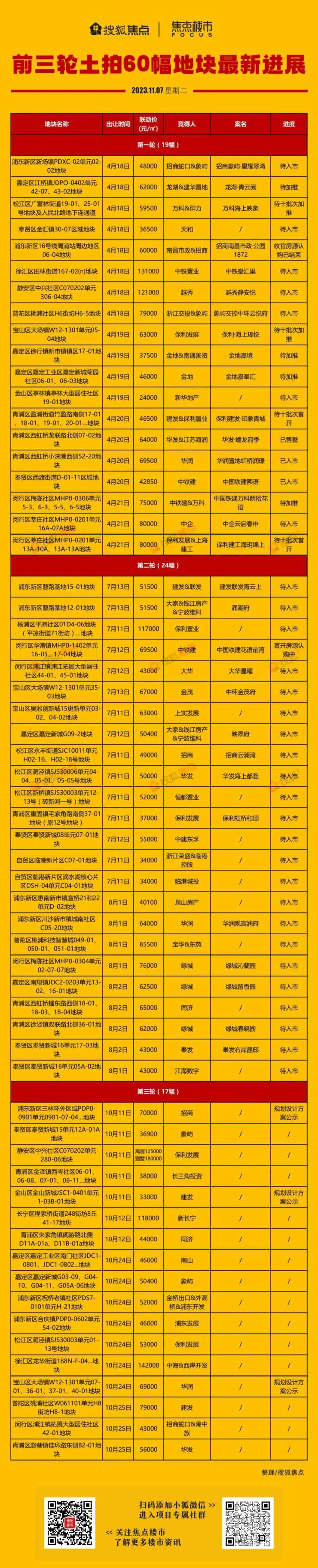 有的已经清盘、有的刚刚动工!上海前三轮土拍60幅地块情况一览