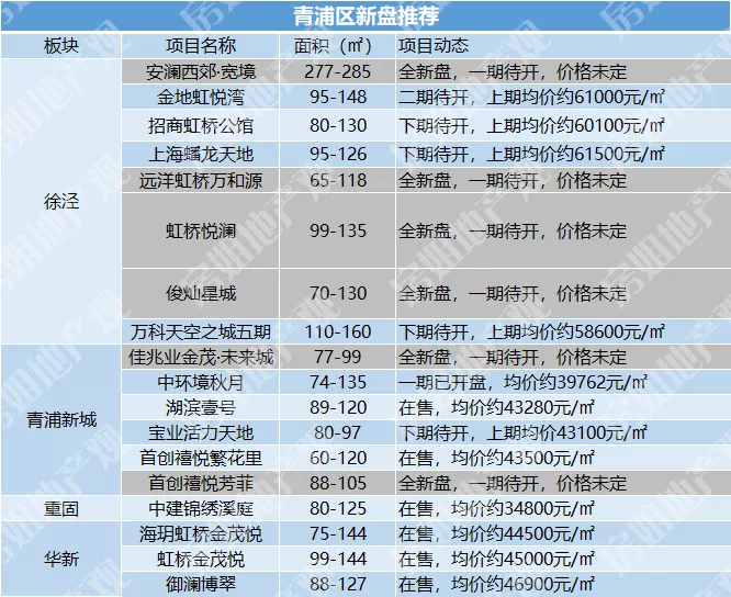 目前青浦值得大家关注的新盘如下(灰底表示全新项目):