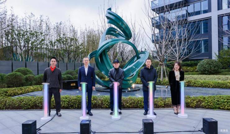 连学辉透露,保利·世博天悦正在构建一套完整的艺术语言,以“艺术文化作品”为脉络,持续为社区注入精神内核——2025年,携手双奥艺术家Ilker Yardimci创作雕塑《日出东方》,以流动的金属线条呼应晨曦破晓的静谧与江潮奔涌的动感;2026年,青年艺术家陈思民创作的《黄浦游龙》正式落成,以“游龙”之姿呼应黄浦江的波澜壮阔,寓意家园的生生不息。