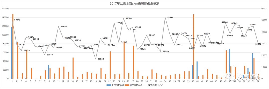 ① 青浦万达茂上周成交2套办公(均价25151元/㎡),表现上扬。