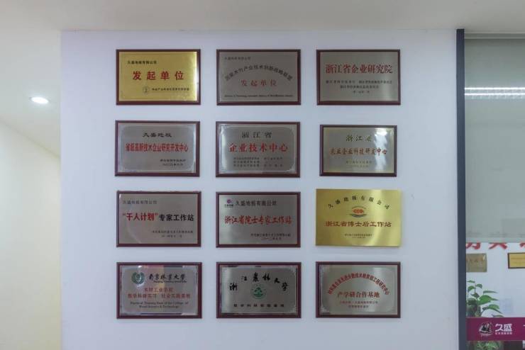 纵观久盛多年来的发展历程,凭借领先的销量、过硬的质量、良好的口碑和环保第一的理念,久盛成为“浙江制造”地板行业标准起草企业,是地板行业首批入选浙江制造品牌,和娃哈哈、吉利、方太等成为浙江制造的代表性品牌。还被选为国家首批“绿色产品”、“绿色工厂”、“绿色供应链”的“三绿企业”。多年来获得了地板行业所有荣誉,如中国地板国家品牌、中国地板十大品牌等,可以说久盛是地板行业公认的荣誉大满贯企业。