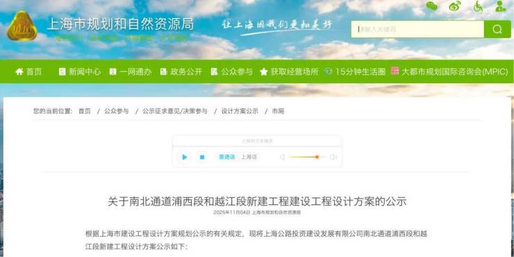 近日,南北通道浦西段和越江段新建工程建设工程设计方案在上海市规划和自然资源局官网正式公示。这条被誉为上海“第二条南北高架”的交通大动脉,真的快要来了!