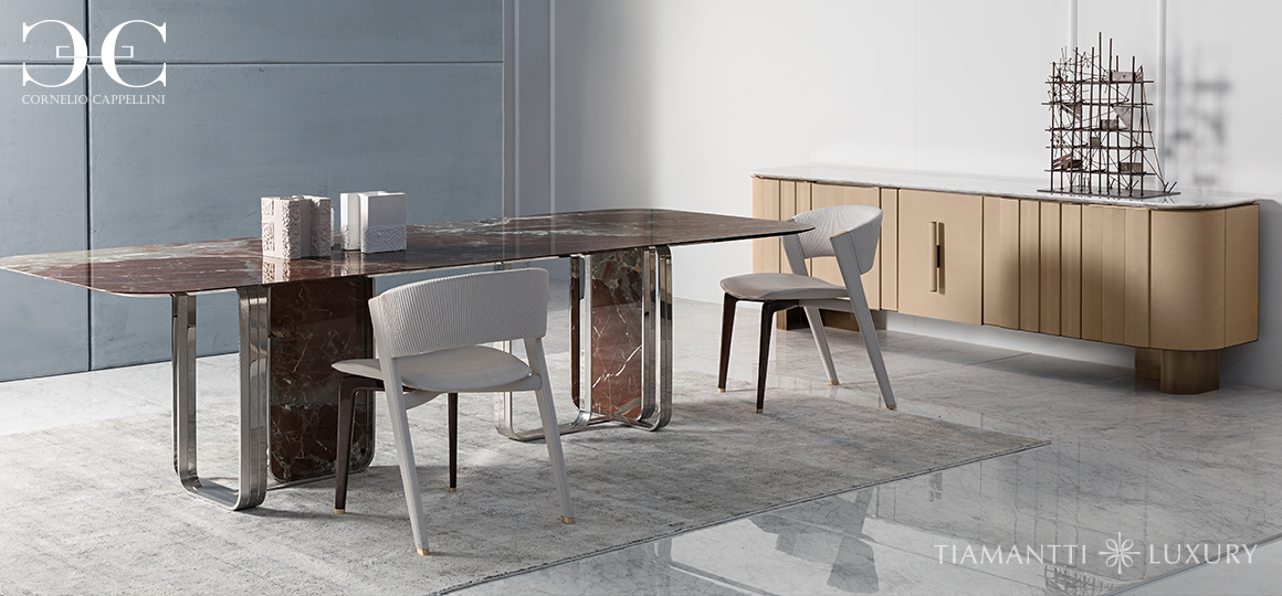 Cornelio Cappellini不同的高品质材料,包括金属,通过浇铸工艺获得的手工制成的Murano玻璃细节,柔软的皮革,艺术陶器细节和珍贵木材以及现代造型设计,共同打造独特的家具系列。