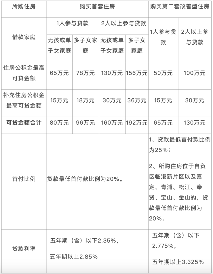 经过调整后,上海住房公积金贷款最新政策如下: