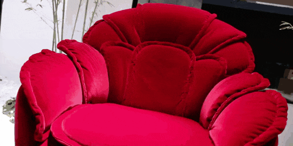 牡丹盛放时的层层叠叠、片片优雅之姿被瞬时定格,花瓣从座垫沿着扶手靠背逐渐向上扩展,形成一个完美的圆形轮廓,营造出丰富的层次感,给空间带来流动性的美感和生命力。