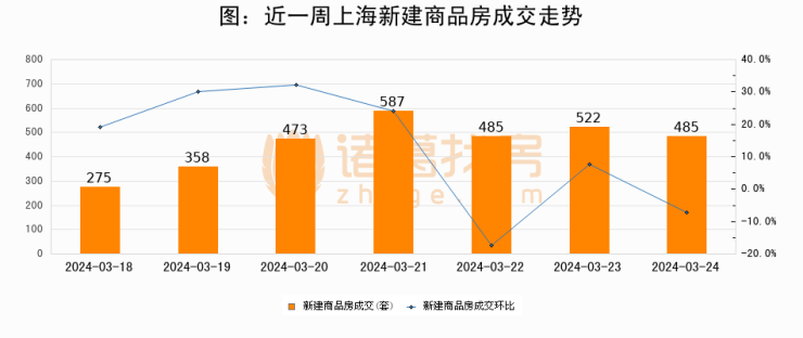【上海成交日报】03月24日新房成交485套;涨价房源291套