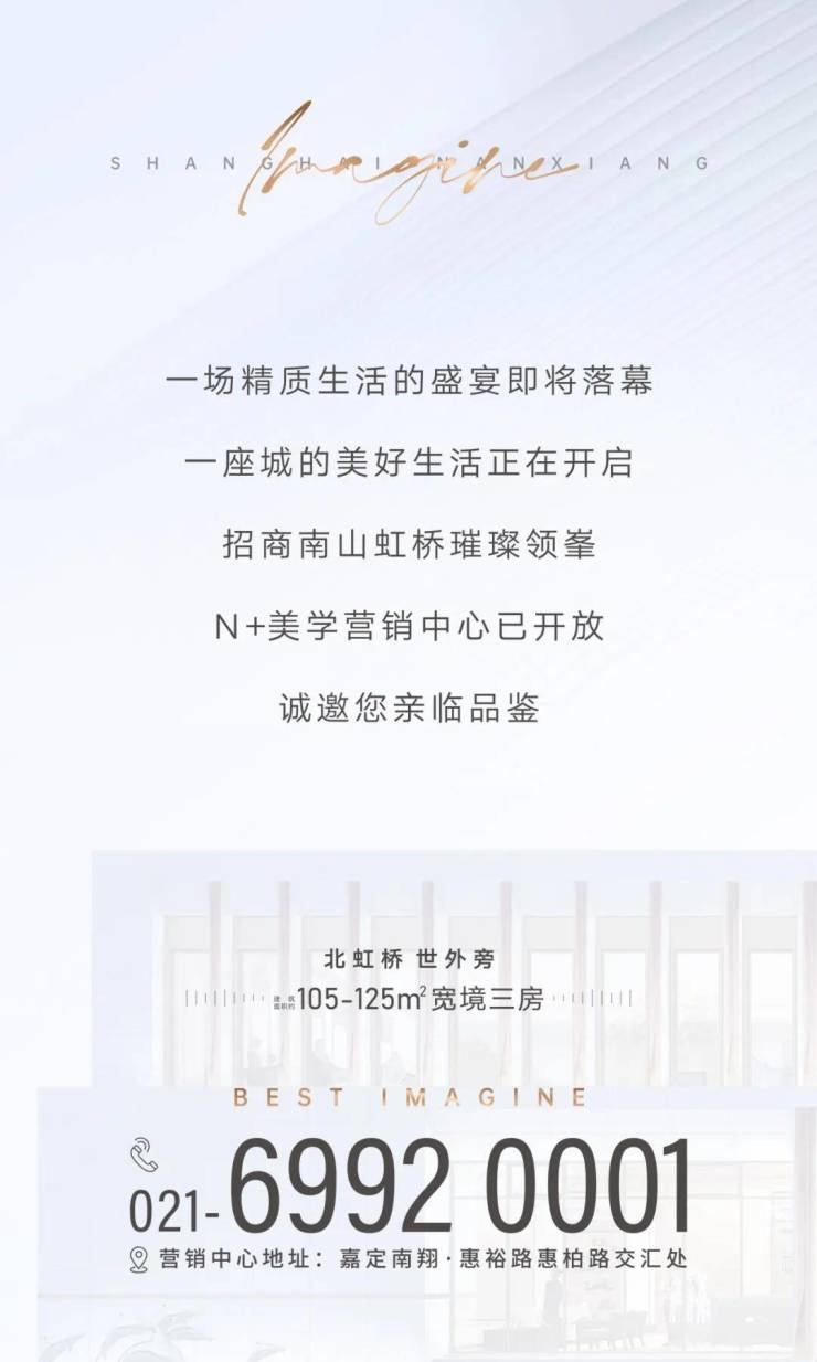 对招商南山虹桥璀璨领峯来说,N+美学营销中心不仅仅是项目审美的呈现,更是北虹桥繁盛与新潮生活场景的具象呈现。一如招商蛇口和南山深耕每一座城市的初衷,在城市发展的浪潮中,打造出更具时代精神,更符合未来期许的品质人居。