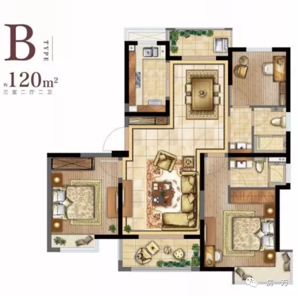 120平3室2卫