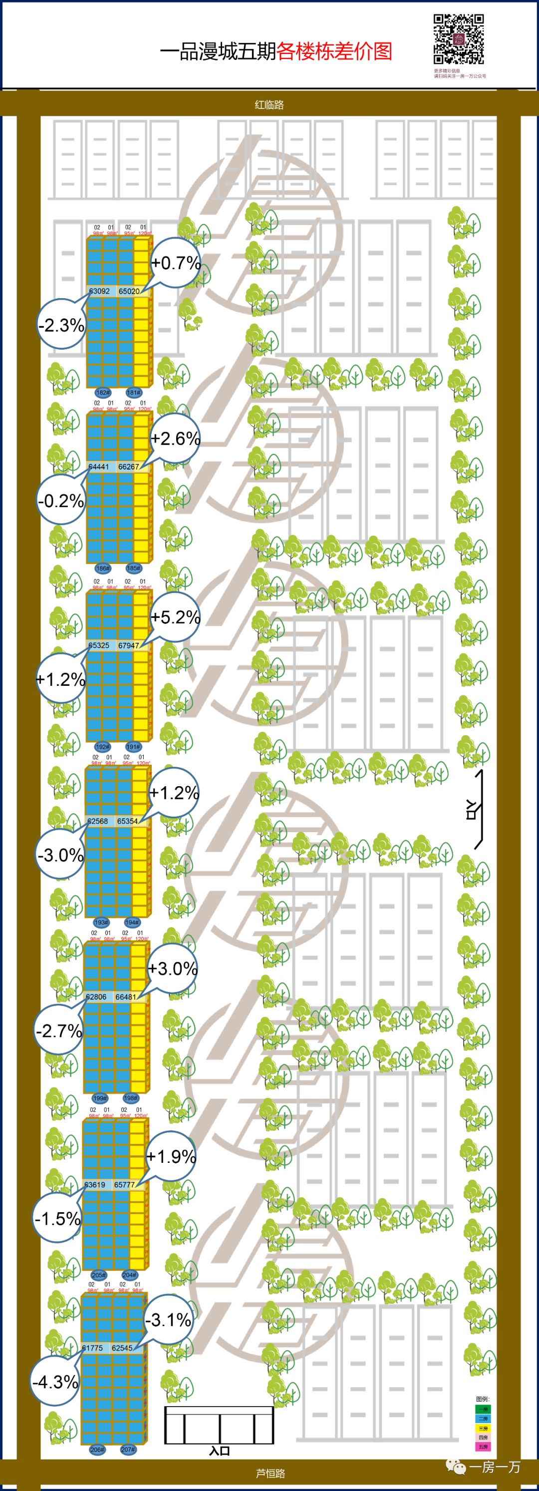 (图中百分比是各个楼栋均价与小区房源整体均价的差幅)