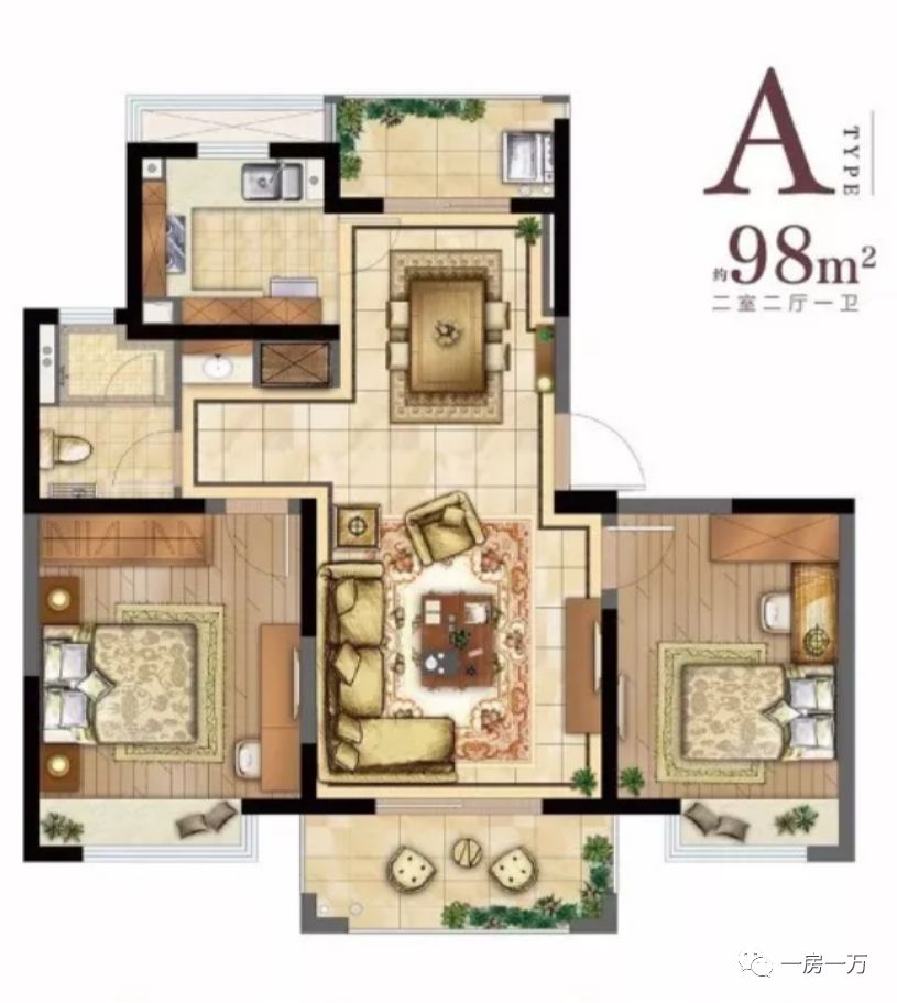 2房(共计292套):主力面积98㎡