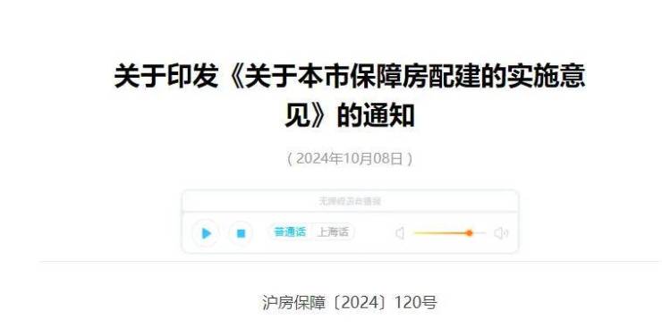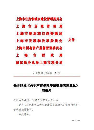 10月8日,上海市住房城乡建设管理委发布《关于本市保障房配建的实施意见》的通知,其中提及凡新出让土地、用于开发建设商品住房的建设项目(租赁住房建设项目除外),均应按照不低于该建设项目住房建筑总面积5%的比例,配建保障房及相应产权车位。