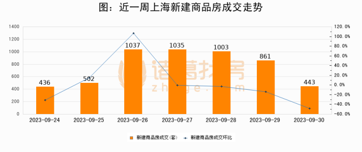 【上海成交日报】09月30日新房成交443套;涨价房源162套