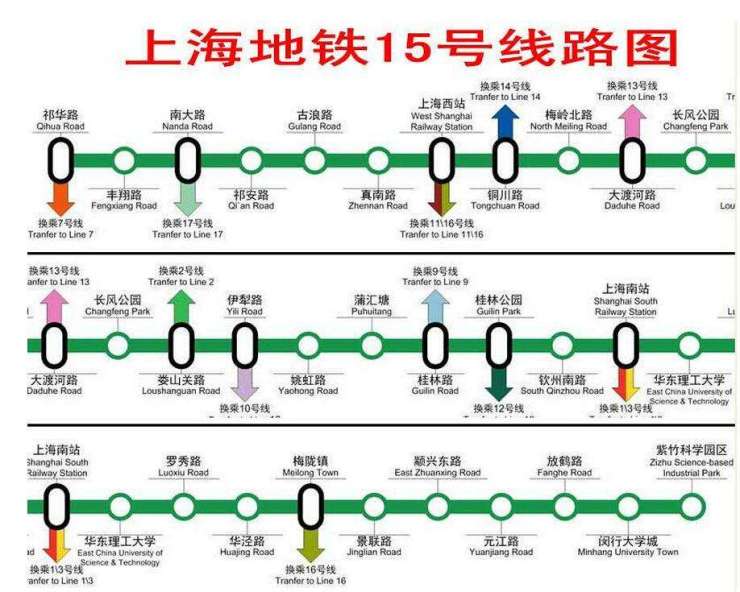 上海轨道交通15号线,号称「西部走廊」,是上海轨道交通网路中一条在建的重要南北走向线,预计于2020年底开通试运营。路线起终城市西北部的宝山顾村公园站,途经宝山、普陀、长宁、徐汇、闵行5个行政区,止于城市西南部的上海紫竹高新技术产业开发区,目前共设30站,拥有10座转车站,目前奉贤正在努力申请15号线延伸到奉贤区,未来可能会有延伸计划。