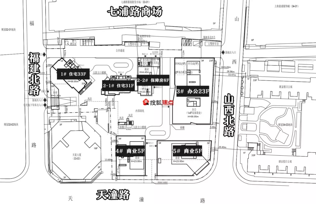 设计方案显示,项目规划2栋住宅,其中1号楼总高33层,2-1号楼总高31层,旁边的2-2号楼为8层保障房,1楼为底商。住宅东侧为1栋23层办公楼,1-4层局部为商业,南侧为2栋5层商业广场。2栋住宅和1栋办公楼总高均为99.95米,商业广场总高约23.95米。