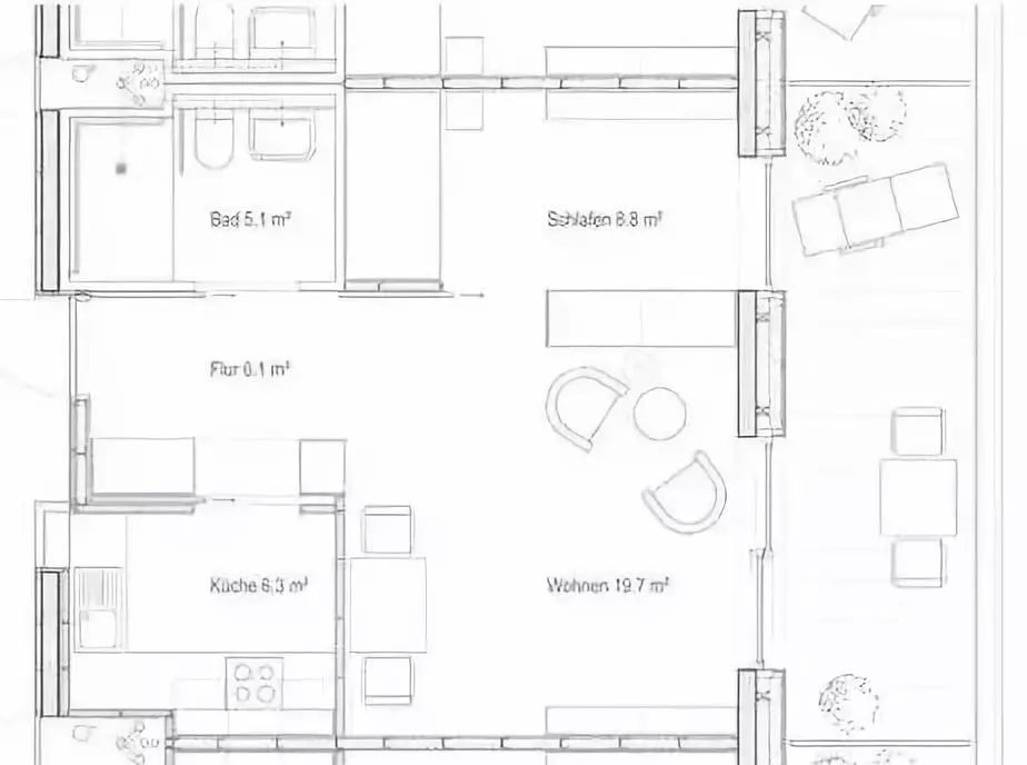 上面为住户:有8个单间(1 Zimmer),56个一室一厅(2 Zimmer),还有4个两室一厅(3 Zimmer)。户型如下: