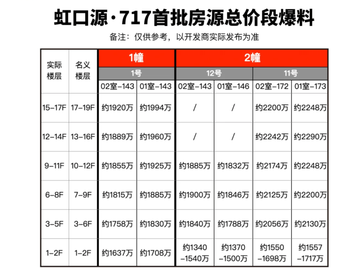 据透露,本次主力户型建面约143/173㎡3-4房价格非常惊喜,预计大部分单价是“12字头”,可能和中兴路板块12.5万/㎡相差无几。