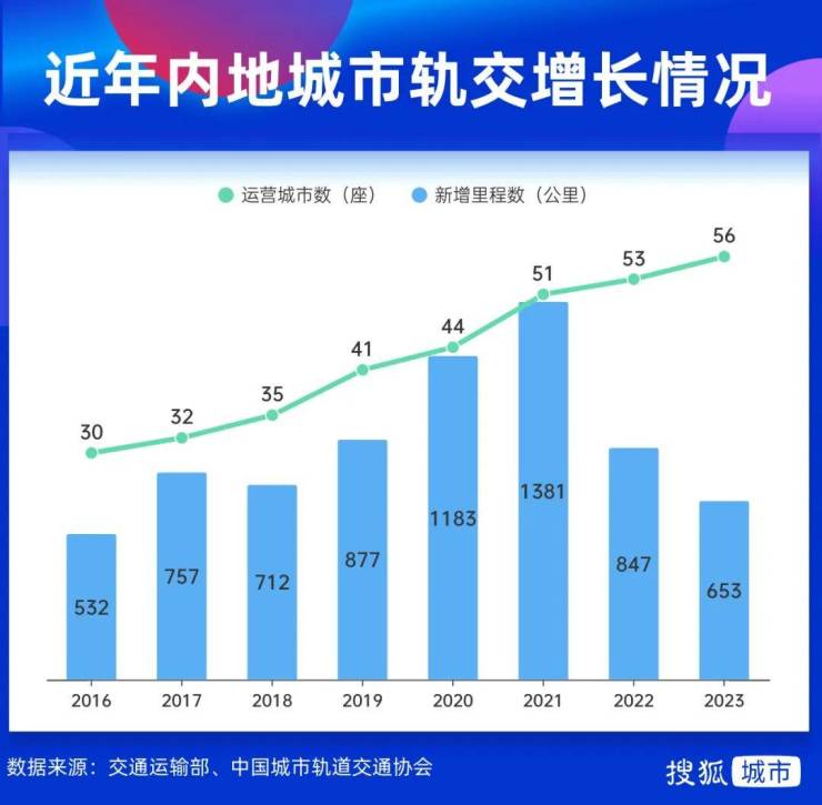 (*注:本文2023年轨交里程数据以交通运输部前11月数据为基础,结合媒体报道、中国城市轨道交通协会12月数据综合计算得出,因统计口径差异部分数据或有出入)