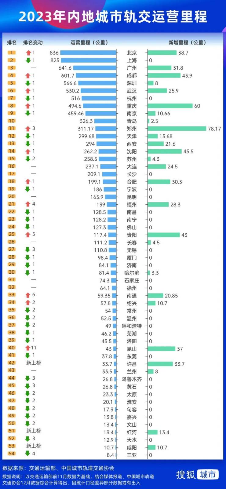 此外,沈阳新增45.5公里,贵阳新增43公里,也是2023年城市轨交新增里程中的佼佼者。