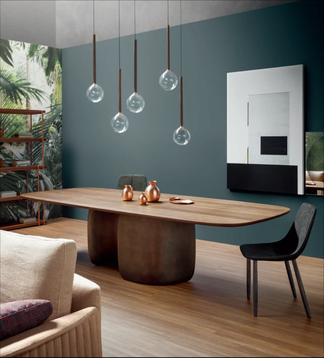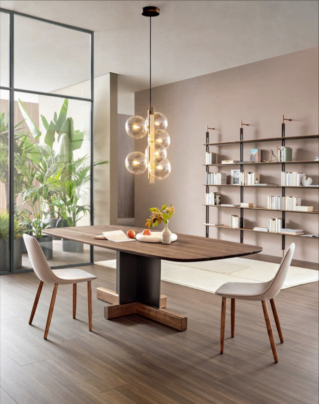 方餐桌方正平稳,象征公平与稳重,比较适合正式场合。长餐桌比圆餐桌节省空间,可靠墙或者放置于角落,对小户型非常友好。