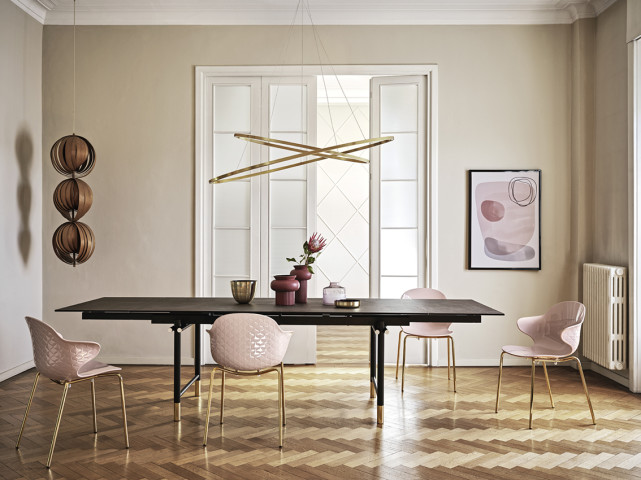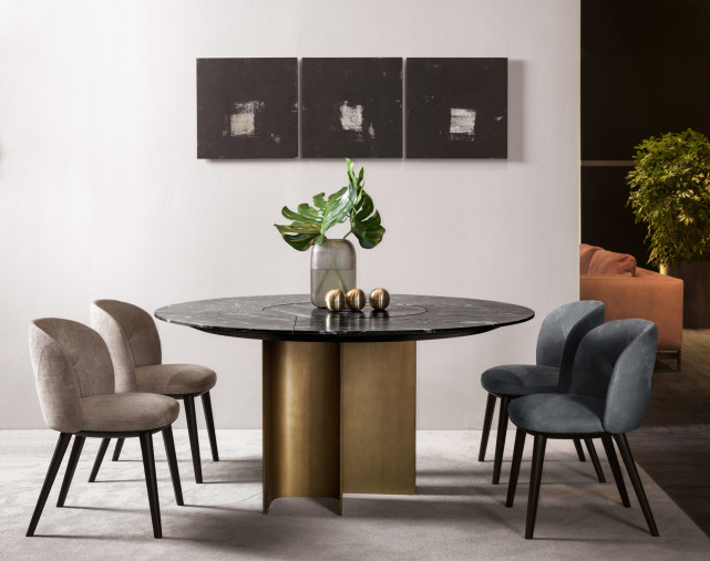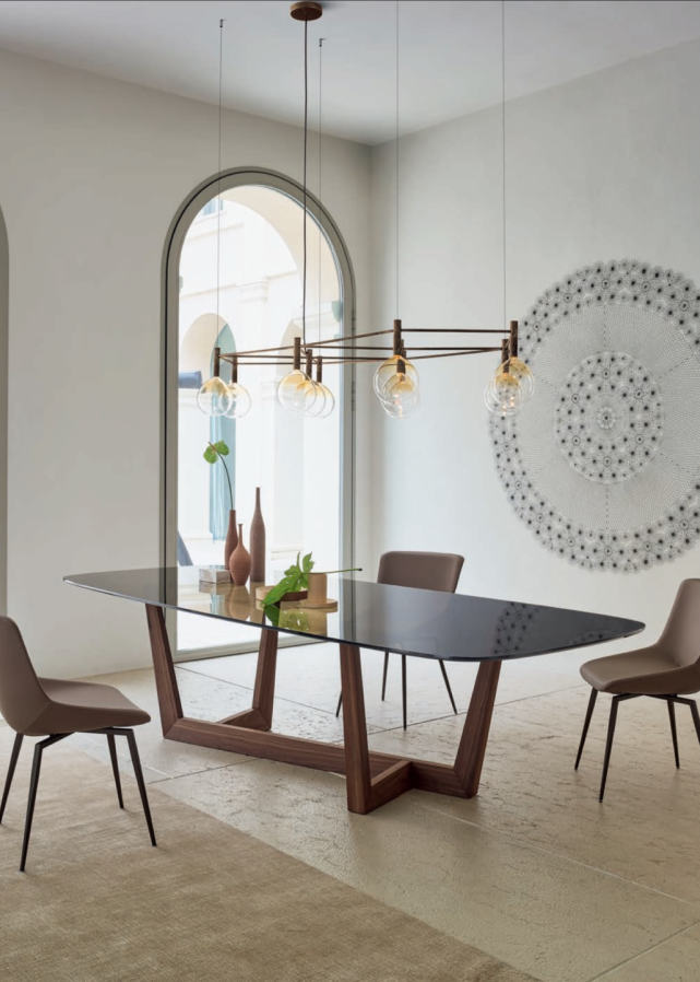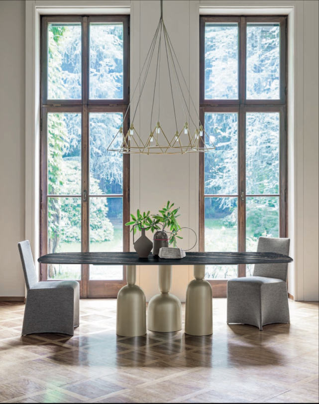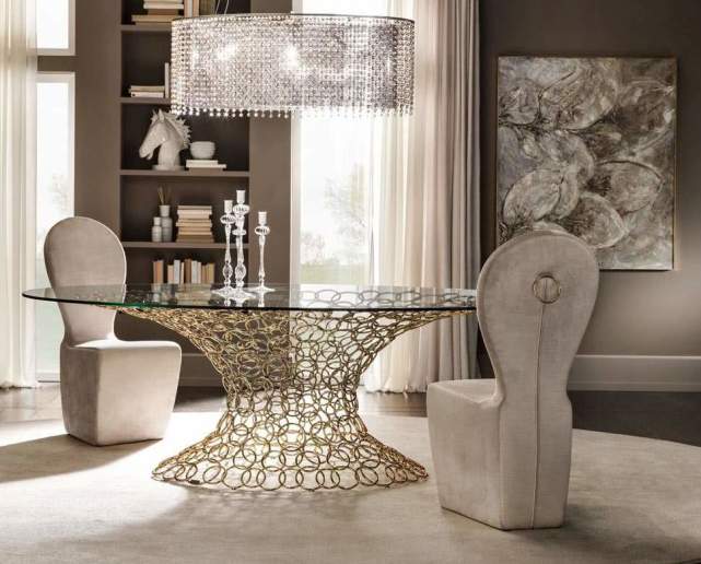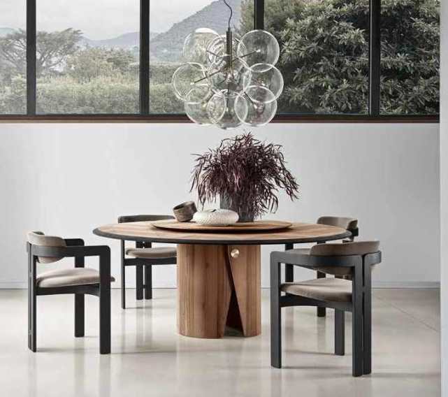 中式、新中式、欧式的装修,较多选择圆餐桌,如果你家吊顶也恰好是圆形,圆餐桌刚好与之相呼应。