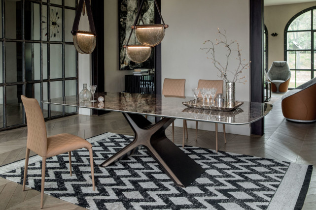 现代风、北欧风、简约风,选择方形餐桌较多,同样也要考虑吊顶问题,方形吊顶与方形餐桌比较相称。