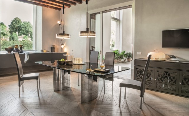 如果餐厅比较方正,或者面积大,便可以选择圆形餐桌来搭配,占地面积大,会让整个空间更为协调,敞亮大气。