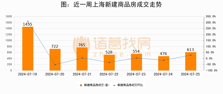 【上海成交日报】07月25日新房成交613套;涨价房源155套