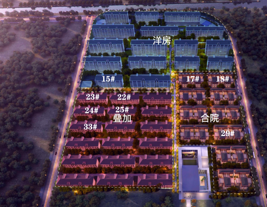 玖玺整个社区呈现南低北高的布局,容积率约1.2,洋房、叠加、合院三大产品类型自成体系,互不干扰,安静舒适性极高。