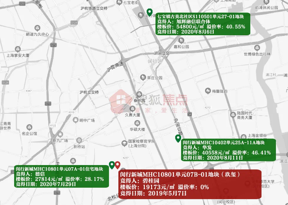 值得一提的是,近来闵行区接连成交了三幅宅地,无一例外,溢价率都颇高: