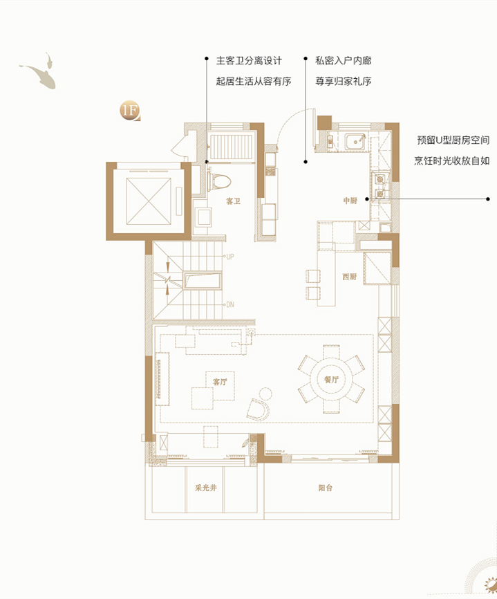 作为改善置业的进阶之选,上下分层的叠墅将多重生活场景安放在不同空间,打破了传统扁平、单一的空间规制,不仅增加了楼上楼下的生活趣味,也带来了生活方式的质变。