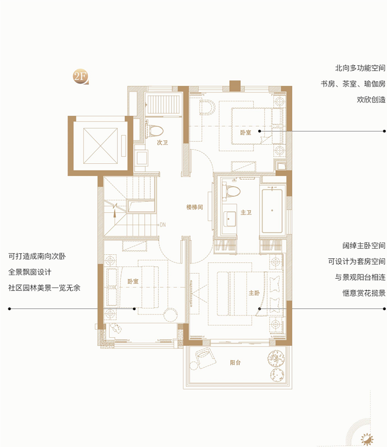 ✔ 格局奢阔方正,三室/四室三卫,大尺度主卧可设计为套房空间;