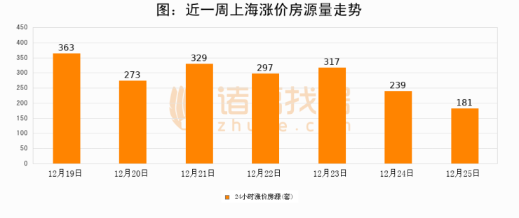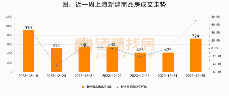 【上海成交日报】12月25日新房成交724套;涨价房源181套