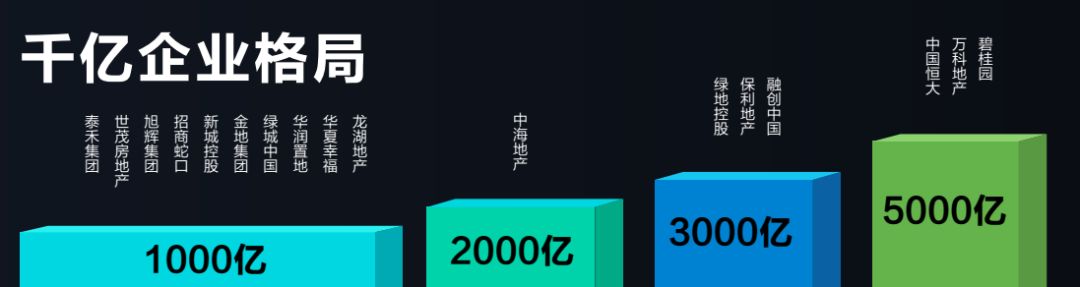 3000亿房企各个实力强劲:包括融创、保利以及绿地等,它们在未来的发展跑道中注定要奋起直追,赶上排名前列梯队;而2000亿则成为一个缓冲区,仅有中海地产1家房企;1000亿房企,则包括龙湖、华润等品牌房企,竞争异常激烈,将来注定是一场血雨腥风的绞杀。